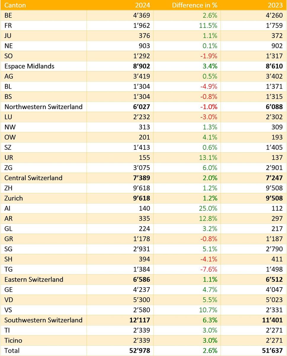 the record year of 2023, which already saw a high of 51'673 startups. This further increase of 2.6% underlines the continued growth and attractiveness of Switzerland as a business location.