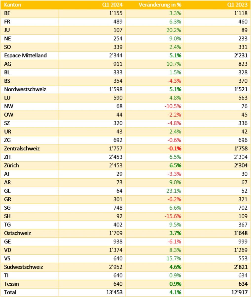 Neugründungen in der Schweiz Q1 2024
